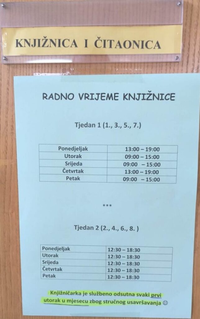 - Popodne: 13:00 – 19:00 (jedan petak u mjesecu)